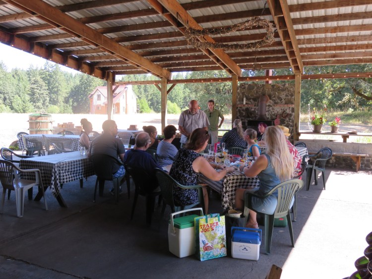 You choose a wine and set a date for your bottling here at the winery. You and your group bottle your barrel with our assistance and with all supplies provided. Bottling takes about one hour and previous groups have had a great time operating the corker and the filler. The wine comes with a simple label that meets government requirements and which can become a back label if you choose to make up your own “house wine” label. After bottling, most groups enjoy a potluck picnic and complimentary wine tasting.